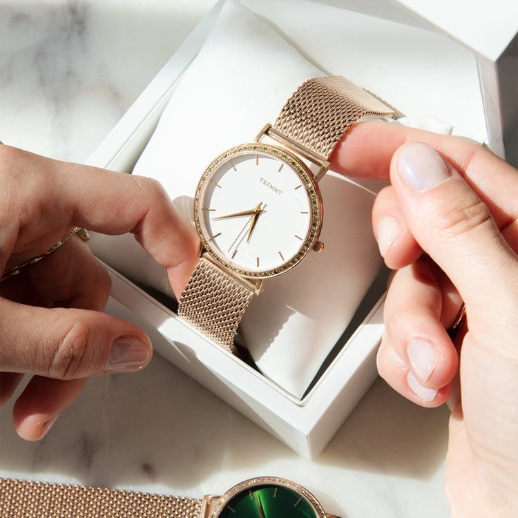 Myslíme na přírodu. Naše hodinky proto šetrně balíme do krabiček z certifikovaného FSC® dřeva, jejichž součástí je luxusní polštářek z koženky nabuca. Ekologicky získávané a recyklované materiály využíváme i na tašky a balení krabiček. Těšit se můžete na speciální dárek, který bude stylovým doplňkem k vašim hodinkám. Darujte (si) luxus v souladu s přírodou.