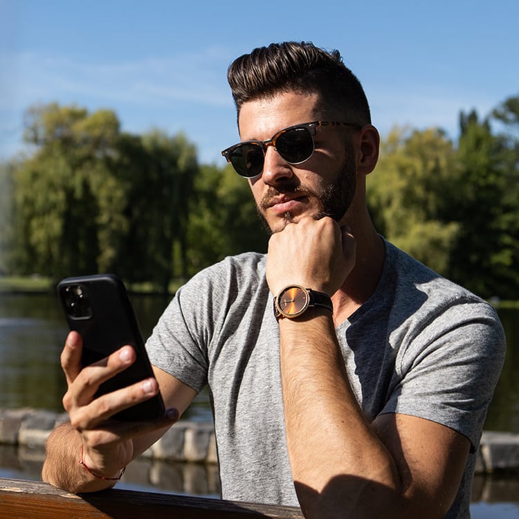 Myslíme na přírodu. Naše hodinky proto šetrně balíme do krabiček z certifikovaného FSC® dřeva, jejichž součástí je luxusní polštářek z koženky nabuca. Ekologicky získávané a recyklované materiály využíváme i na tašky a balení krabiček. Těšit se můžete na speciální dárek, který bude stylovým doplňkem k vašim hodinkám. Darujte (si) luxus v souladu s přírodou.