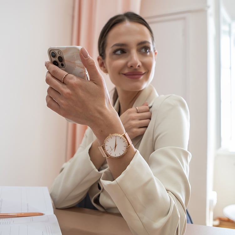 Myslíme na přírodu. Naše hodinky proto šetrně balíme do krabiček z certifikovaného FSC® dřeva, jejichž součástí je luxusní polštářek z koženky nabuca. Ekologicky získávané a recyklované materiály využíváme i na tašky a balení krabiček. Těšit se můžete na speciální dárek, který bude stylovým doplňkem k vašim hodinkám. Darujte (si) luxus v souladu s přírodou.