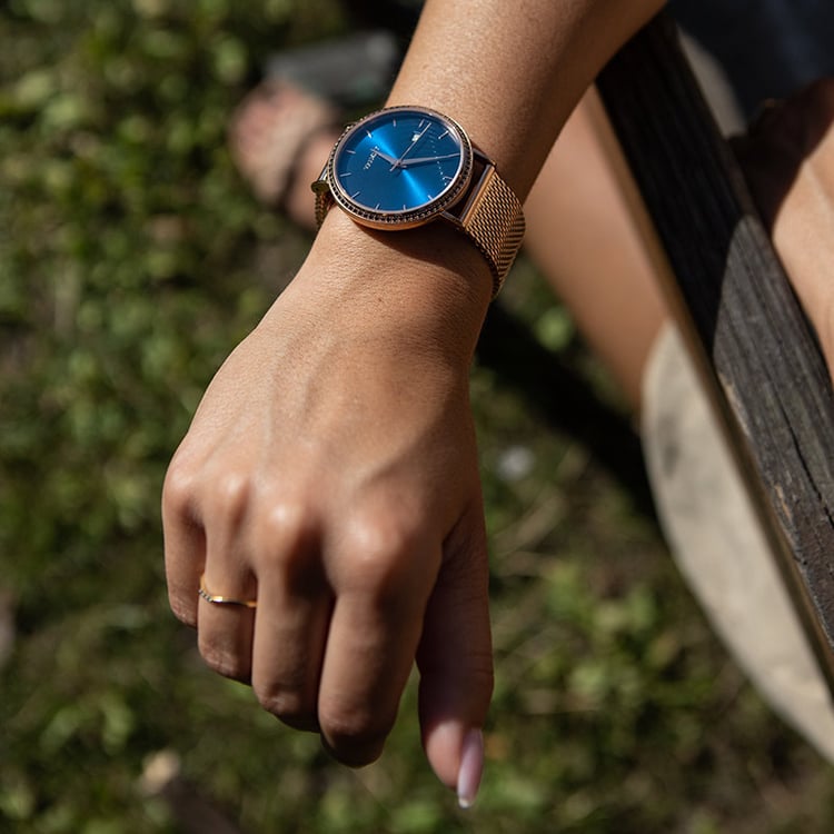 Myslíme na přírodu. Naše hodinky proto šetrně balíme do krabiček z certifikovaného FSC® dřeva, jejichž součástí je luxusní polštářek z koženky nabuca. Ekologicky získávané a recyklované materiály využíváme i na tašky a balení krabiček. Těšit se můžete na speciální dárek, který bude stylovým doplňkem k vašim hodinkám. Darujte (si) luxus v souladu s přírodou.