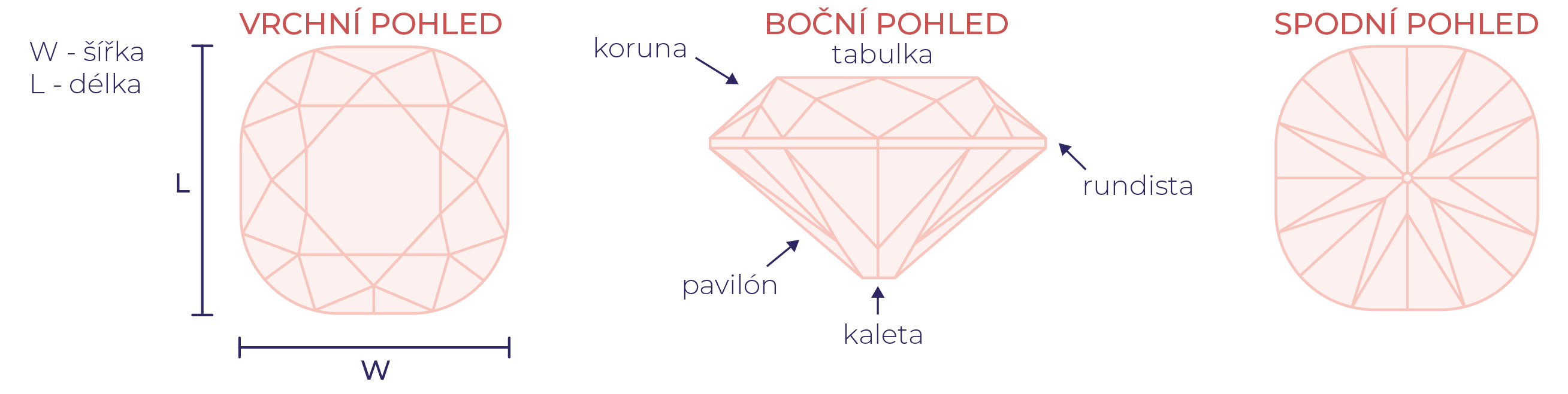 Diamant – nejlepší přítel ženy. Diamanty jsou stejně jako ženy různorodé. Každý diamant v sobě skrývá svůj příběh. Diamanty se neukážou v celé své kráse v neopracovaném stavu, musí být vybroušené a vyleštěné, aby odhalily všechny své půvaby, pro které jsou tak proslulé a ceněné. Brousí se do několika základních tvarů, které jsou odlišné, unikátní a charakteristické pro každý brus. Tvar poukazuje na hlavní linii diamantu a umocňuje tak krásu hotového diamantového šperku.