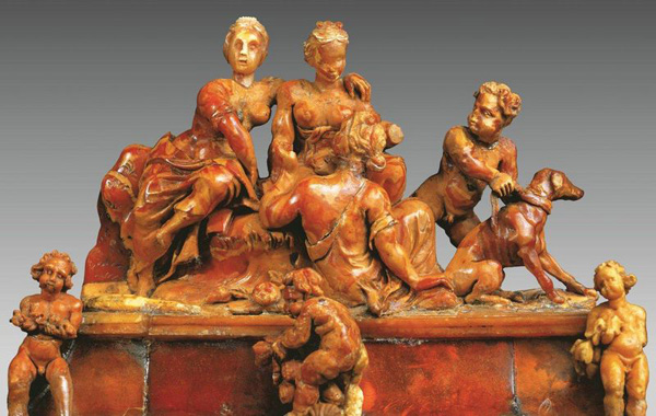 V 18. století nechal pruský král Fridrich Vilém na počest cara Petra Velikého vystavět v Berlínském zámku komnatu s bohatou nástěnnou výzdobou z jantaru. Pak ji nechal převézt do Kateřinského paláce v Petrohradě, jenž zdobila několik následujících staletí. Od konce druhé světové války je však originální jantarová komnata nezvěstná a v Kateřinském paláci ji od roku 2003 připomíná jen pouze věrná replika.