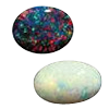- Bílý nebo světlý opál: průhledný nebo poloprůhledný kámen s hrou barev na bílém nebo světle šedém pozadí (podkladové barvě). Klasická bývá opalizace do odstínů modré nebo zelené.