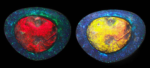 - Fluorescence Bílý opál – bílá, namodralá, zelenkavá, nahnědlá, ohnivý opál – zelenkavá až hnědá.