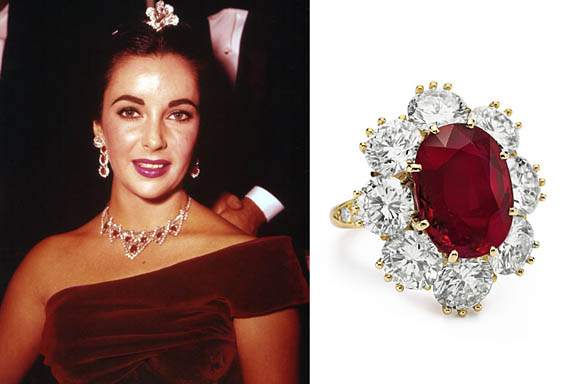 Jeden z nejslavnějších rubínových šperků daroval hollywoodské krásce její první manžel Richard Burton. V roce 1968 tak rozšířil její sbírku šperků o jedinečný diamantový prsten s 8ct rubínem. Elizabeth si vůbec potrpěla na krásné šperky a vlastnila celou rubínovou kolekci, která byla tvořena náhrdelníky, náušnicemi a již zmíněným prstenem.