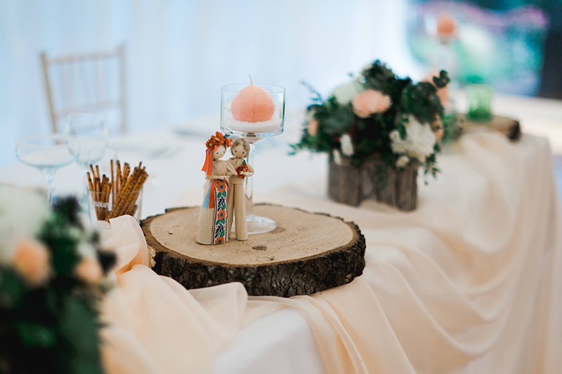- zdobení hostů myrtou se stužkou a ozdobným špendlíkem nebo vývazkem v barvách svatby;