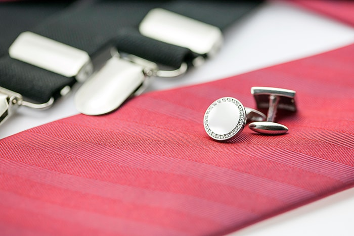 Drobný pánský šperk se vyrábí ze všech myslitelných materiálů. Od plastových, dřevěných a skleněných kousků po stříbrné, zlaté a platinové. Méně formálním outfitům sluší obyčejnější materiál, kdežto na svatbu by ženich měl sáhnout spíše po drahém kovu, který se k obleku hodí více. Hodnotné a tradiční zlato v klasickém žlutém, nadčasovém bílém nebo moderním růžovém odstínu rozzáří dobře padnoucí oblek a lze ho dobře sladit třeba s hodinkami. Nesmrtelný kov pánům vyhovuje pro svoji trvalost a odolnost a stále oslovuje řadu mužů. Nezničitelná platina vystupuje na výsluní teprve několik posledních desetiletí, kdy si ji klenotníci zamilovali pro její tvrdost a dokonalý stříbrošedý lesk, který působí na první pohled nenápadně, na druhý však už luxusně. Oba kovy odpovídají požadavkům na kvalitu a vkus ženichů.