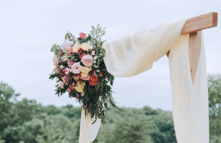 Dalším trendem je svatba pod širým nebem. Pro venkovní obřad je ideální svatební oblouk, který se dá opět pořídit z druhé ruky nebo půjčit. Obzvláště módní jsou oblouky geometrických tvarů, půlkruhové, trojúhelníkové nebo šestihranné. A jak už jsme psali, je vhodné je ozdobit zelenými prvky a květinami ve vybraných svatebních barvách.