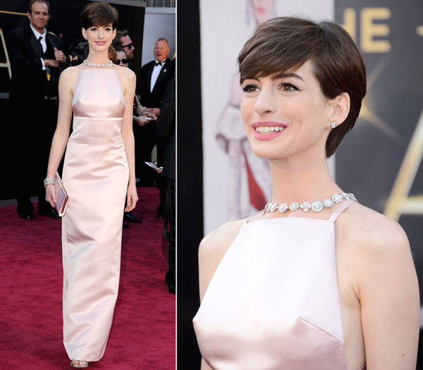 Pohledná herečka získala svou první oscarovou cenu v roce 2013 za jednu z hlavních rolí v muzikálu Bídníci. Na slavnostní předávání cen si oblékla hladké růžové šaty Prada a jemné diamantové náušnice a náhrdelník ve tvaru kytiček z dílny Tiffany.