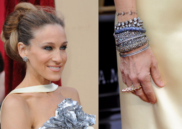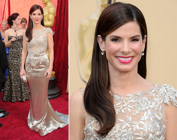 V roce 2010 dostala Oscara i krásná herečka Sandra Bullock, a to za snímek Zrození šampióna. Na výjimečný večer si zvolila třpytivé šaty s vyšívanou květovanou krajkou. Jako jedna z mála hereček měla na sobě vlastní, nikoli zapůjčené, diamantové šperky. A to jemné diamantové náušnice a diamantový náramek od Neil Lane.