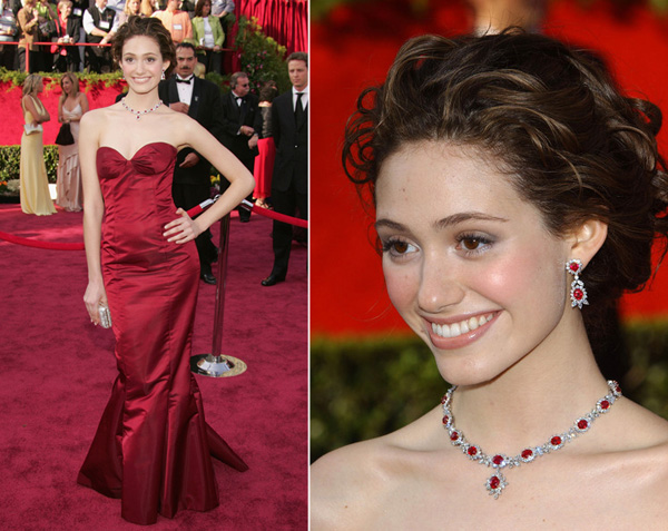 V tomtéž roce zazářila na předávání Oscarů i herečka Emmy Rossum, která si zahrála ve snímku Fantom opery. Na slavnostní příležitost zvolila elegantní rudé šaty od Ralpha Laurena a rubínové šperky s diamanty od Harryho Winstona.