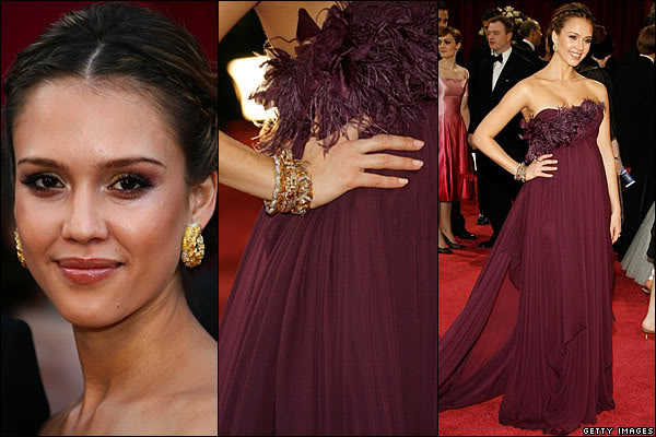 V roce 2008 se v podání půvabné herečky neslo předávání filmových cen v duchu vintage. K fialovým šatům si vzala několik zlatých vrstvených náramků od Cartiera, které vytvořily s tmavými šaty nádherný kontrast. Rubínový náramek s diamanty je zhotoven z bílého a žlutého zlata ve stylu pavé. Druhý z náramků obsahuje motivy mušliček. Výrazné náramky doplnila herečka zlatými kruhovými náušnicemi, rovněž z dílny Cartiera.