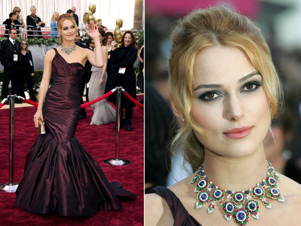 V roce 2006 na nejlepší herečku nominovaná Keira Knightley uchvátila všechny přítomné hosty fialovými šaty od Very Wang a působivým vintage náhrdelníkem ve stylu 60. let z dílny Bulgari.