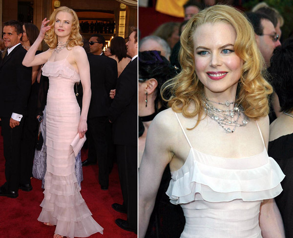Na filmovou cenu byla herečka nominována za roli v muzikálu Moulin Rouge, a to v roce 2002. Na červeném koberci zazářila ve světle růžových šatech od Chanel a s Bulgari náhrdelníkem s nebroušenými diamanty, na jehož designu se osobně podílela.