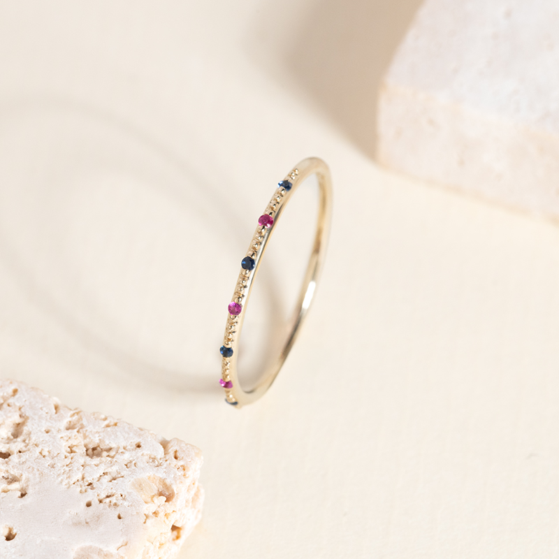 Rubín je jedním z nejoblíbenějších drahých kamenů, je ceněný především pro svoji nádhernou barvu, která může být od fialovorůžové přes holubí krev až po sytě červenou. Rubínové šperky jsou symboly vášně, lásky a života. Není divu, že se rubíny objevují v legendárních špercích, 40leté výročí svatby se nazývá rubínová svatba a jedním se zvyků je, že si žena nechá do svého snubního prstenu osadit drobný rubín. V naší nabídce šperků s rubíny najdete prsteny, náušnice a náhrdelníky od těch levnějších stříbrných s vytvořenými rubíny až po skvostné zlaté šperky s rubíny přírodními. Rubíny se také s oblibou kombinují s diamanty, krásným dárkem tak může být eternity prsten vykládaný po obvodu kombinací těchto dvou kontrastních drahokamů.
