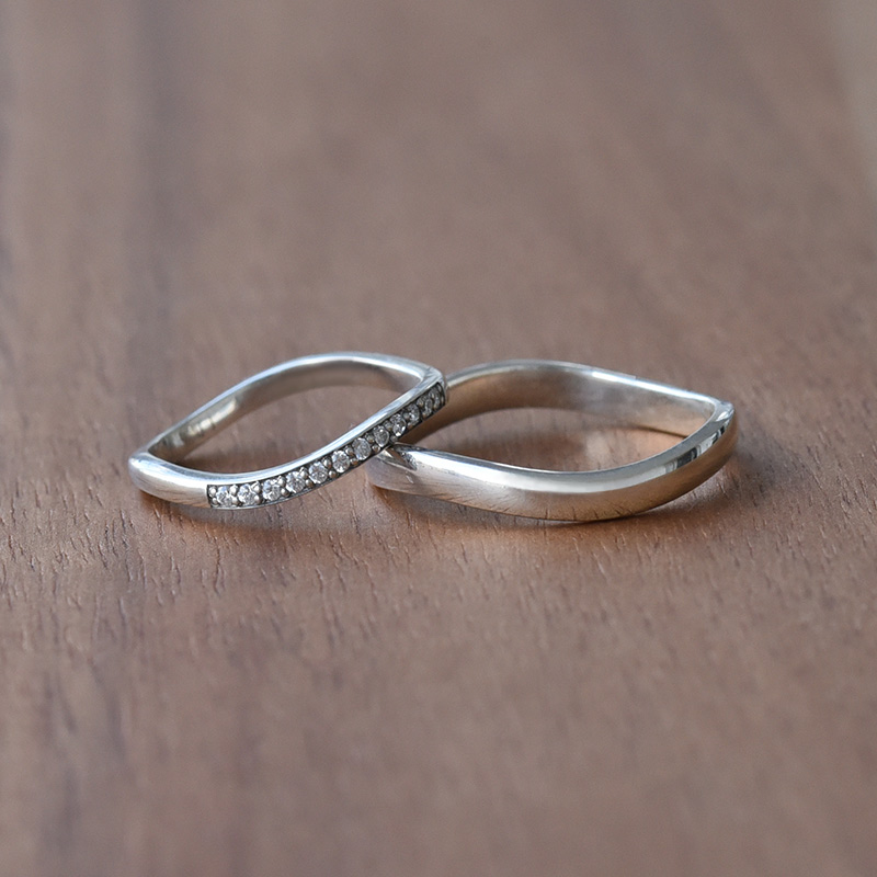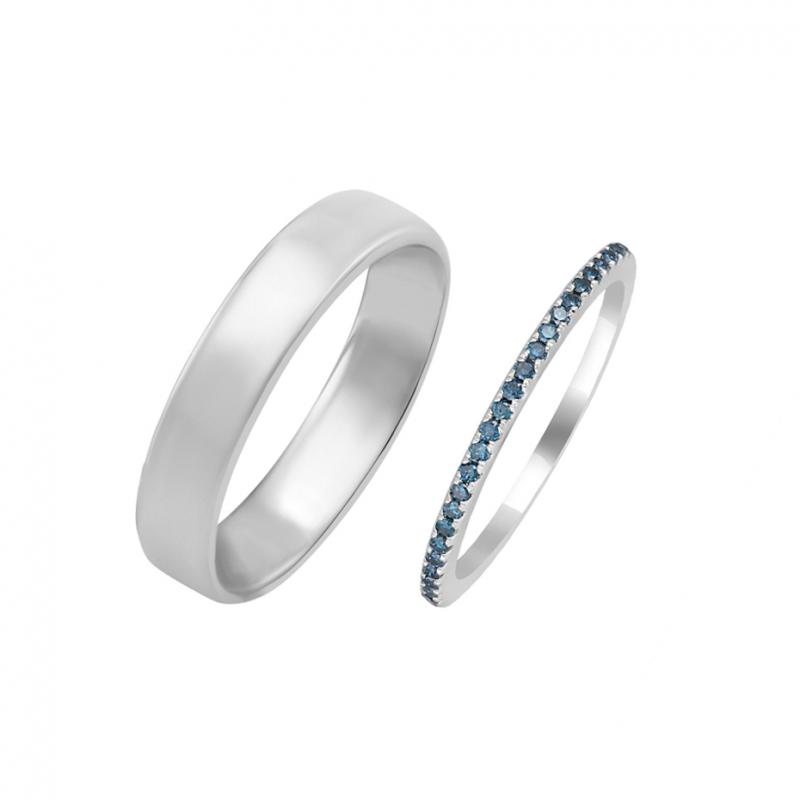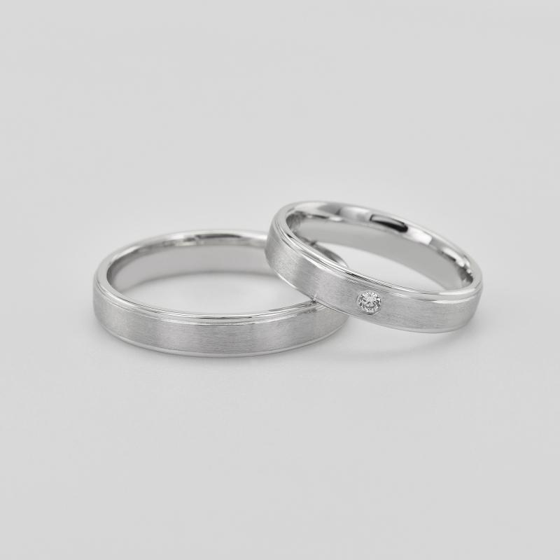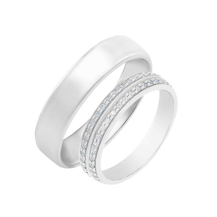 Dámský snubní prsten s diamantem a hladký kroužek pro pány