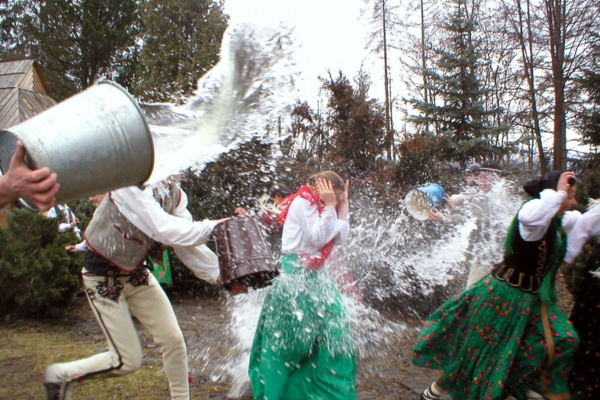 Ve střední Evropě se během Velikonoc slaví podobné zvyky, ale dovolte nám představit tradice našeho méně známého souseda, Polska. Věřící rodiny chodí na Bílou sobotu společně do kostela, kde si nechávají požehnat jídlo, které snědí až v neděli ráno. Většinou si s sebou nosí bílou klobásu, vejce, křen, chléb se solí a černým kořením. Méně křesťanským zvykem už je polské velikonoční polévání, čili „Smigus-Dyngus“. Na Velikonoční pondělí se chlapci a muži snaží děvčata zmáčet vědry vody, dnes už používají i stříkací pistole a cokoliv, co jim přijde pod ruku. Legenda říká, že dívka, kterou polijí, se do roka provdá. Počátky této tradice se hledají až u křtu polského knížete Měška, který byl pokřtěn na Velikonoční pondělí v roce 966 n. l.